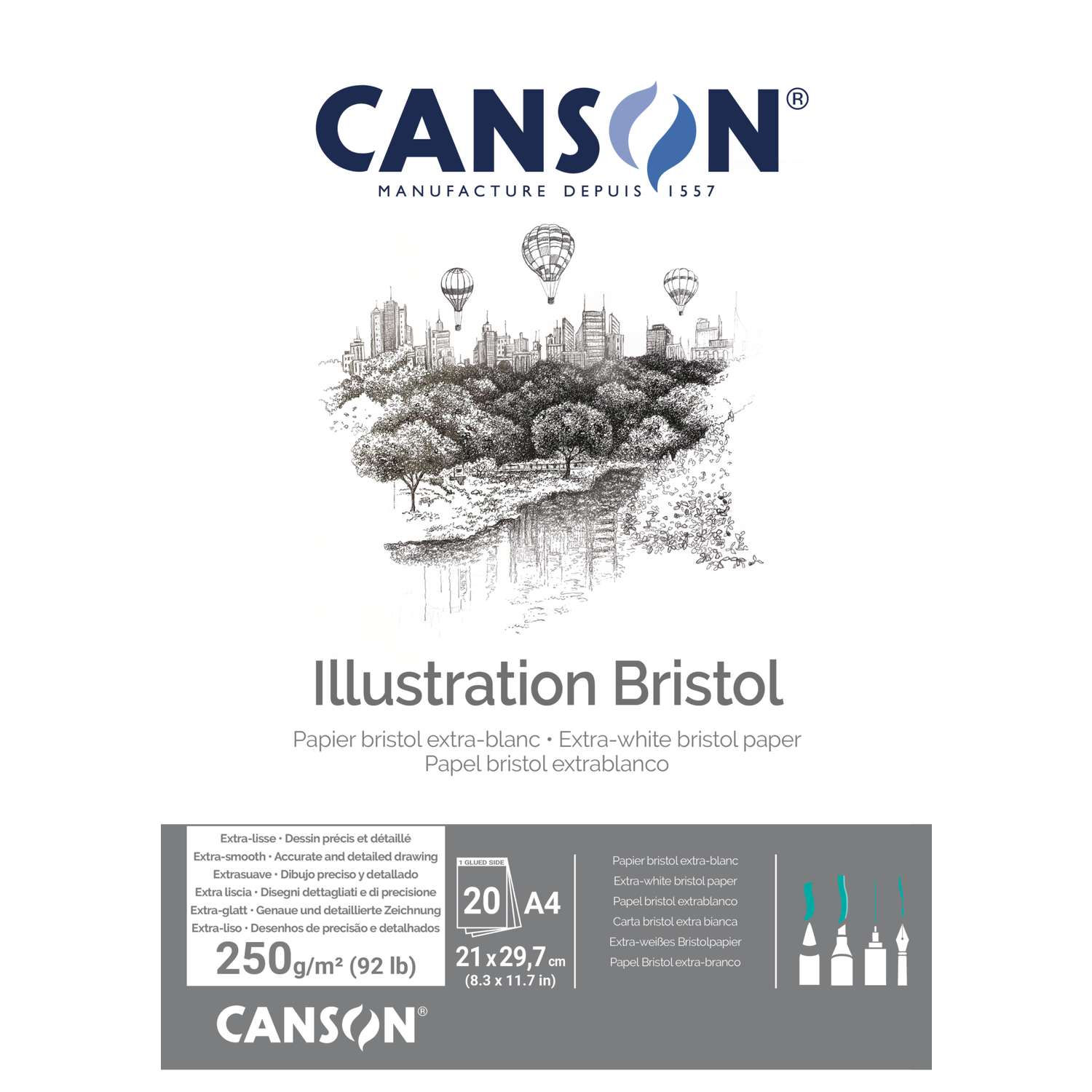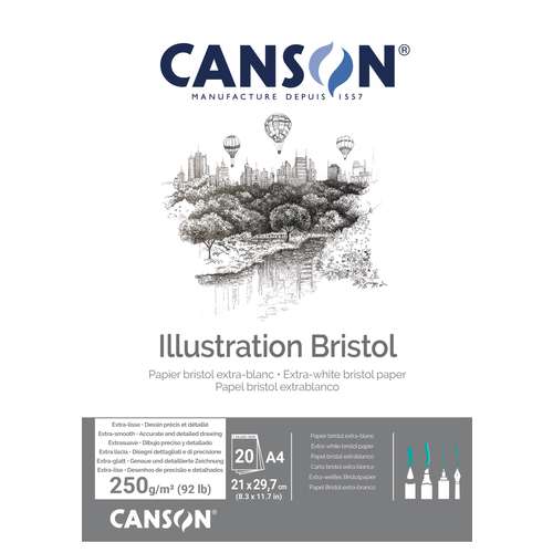 Het Bristol tekenblok van CANSON® bevat 20 vel hoogwaardig Bristol papier, geschikt voor velerlei technieken, waarbij een superglad papieroppervlak gewenst is.