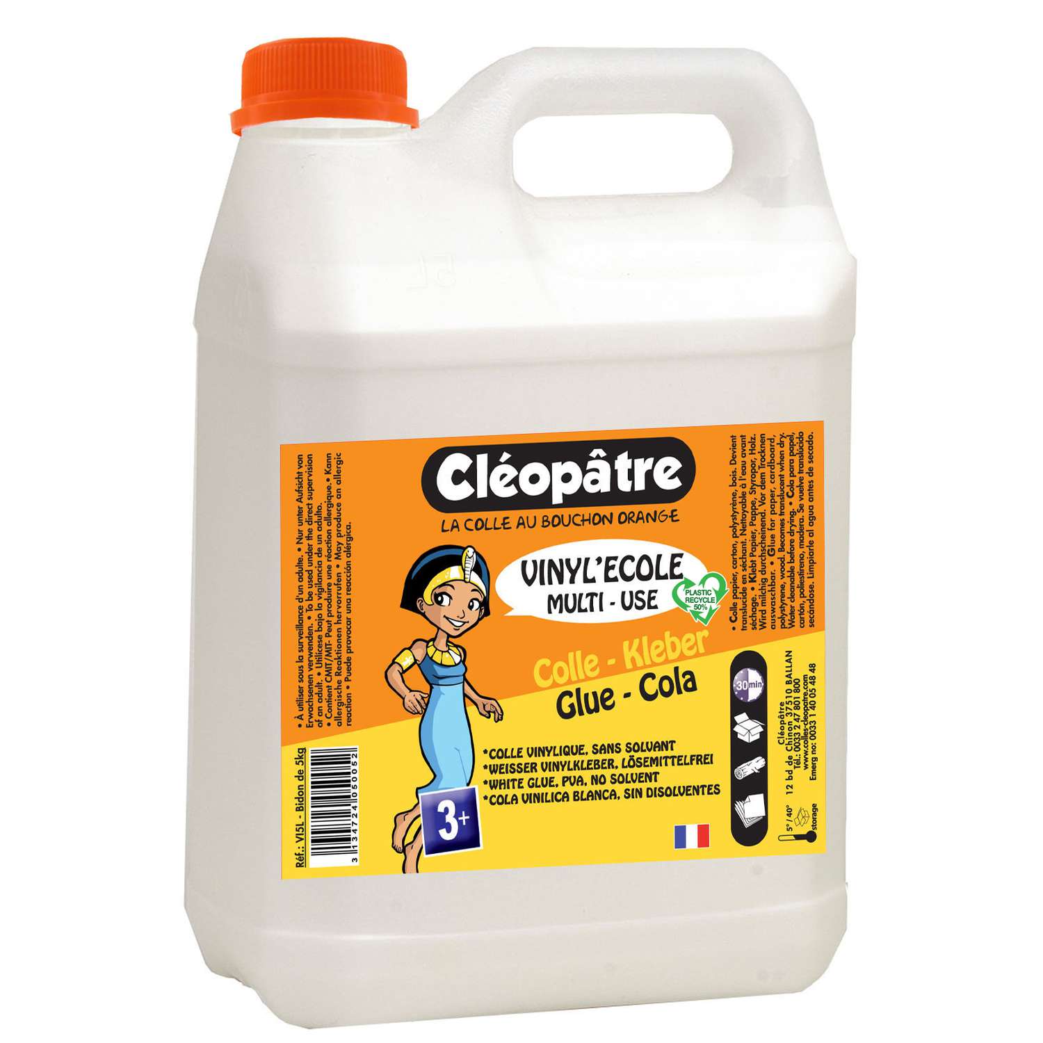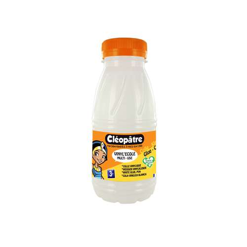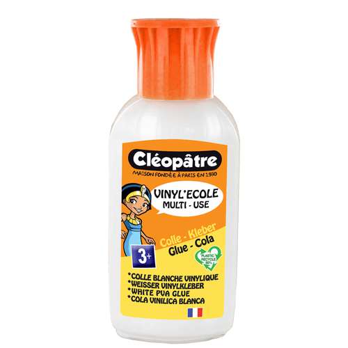 CLÉOPÂTRE Vinyl'Ecole is een witte vinyllijm die speciaal ontwikkeld is voor kinderen. Uitstekend geschikte multifinctionele lijm voor knutselwerk op school of kleuterschool. Deze ideale knutsellijm kleeft en verlijmt vrijwel alle soorten knutselmaterialen en is dus heel veelzijdig bruikbaar.