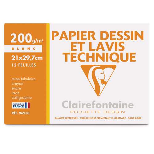 De productspecificaties van het DESSIN & LAVIS tekenpapier van Clairefontaine: