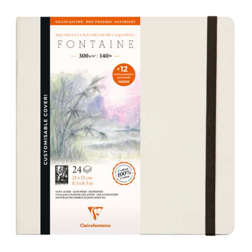 Tellement charmant et élégant — zo kun je deze aquarelboekjes van Clairefontaine wel noemen! Elk boekje heeft 24 vel van het populaire FONTAINE aquarelpapier. Dat papier wordt gemaakt van 100% katoen. Het heeft een gramsgewicht van 300 g/m², een gladde, gesatineerde oppervlaktestructuur en is zuurvrij, pH-neutraal en vrij van OBA’s (optische witmakers).