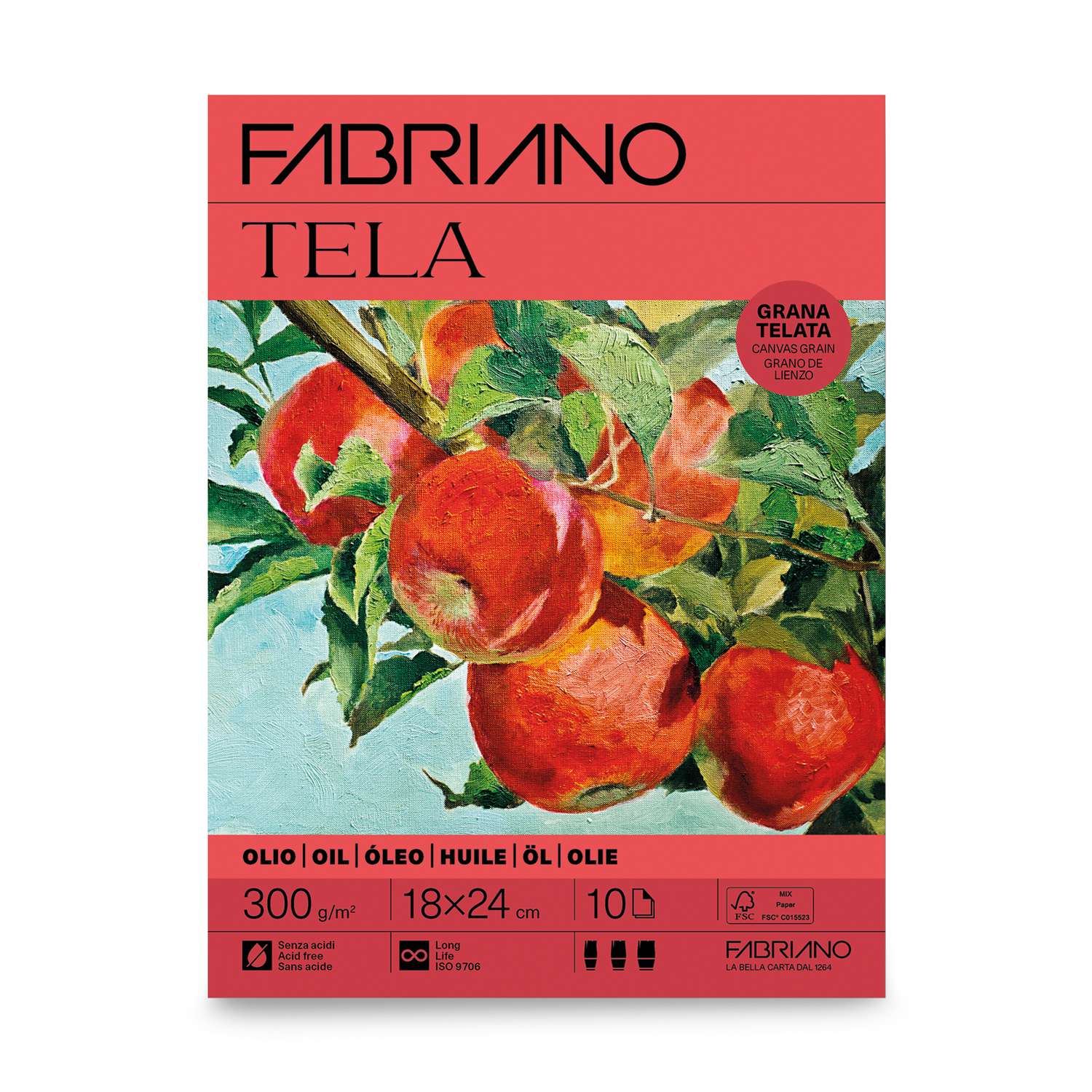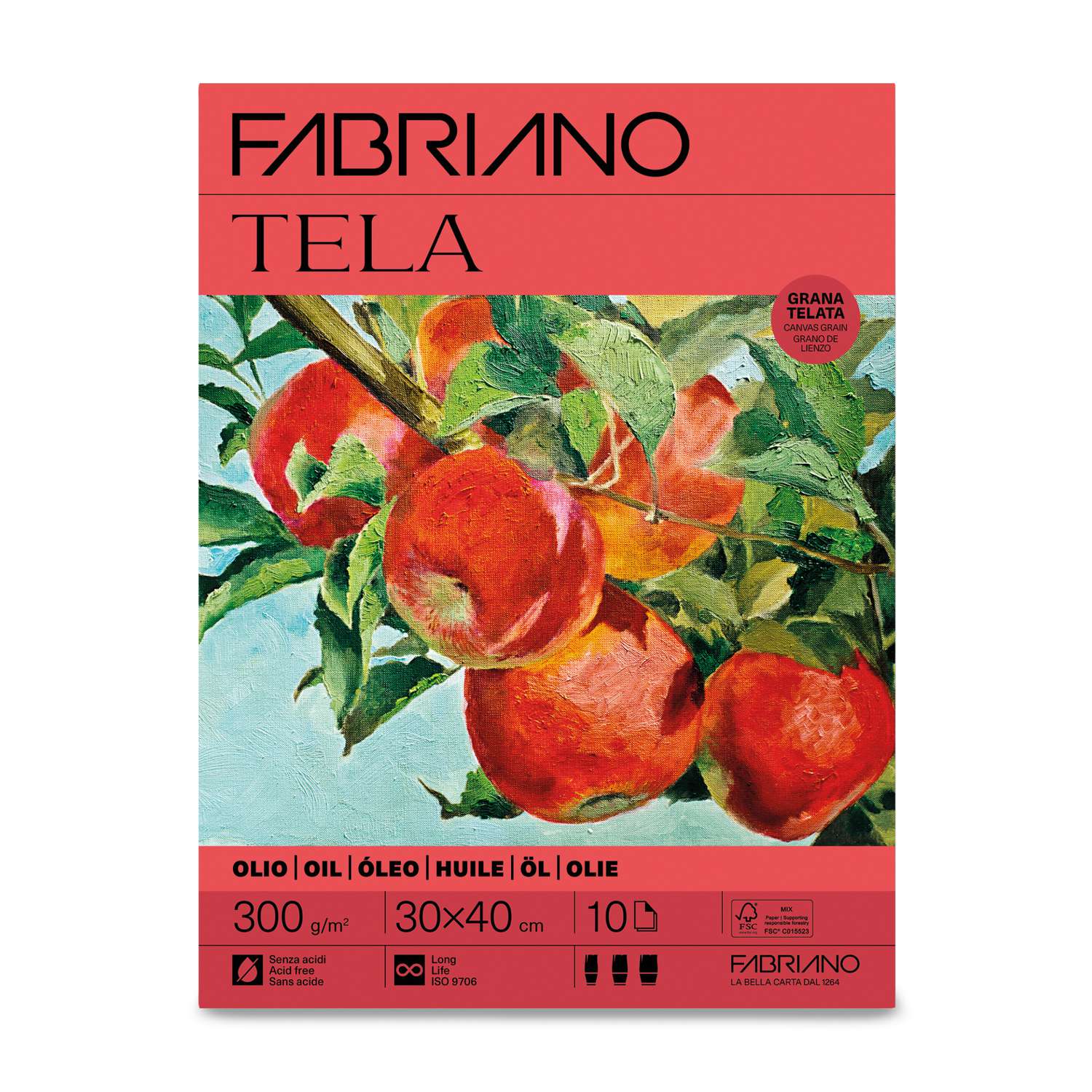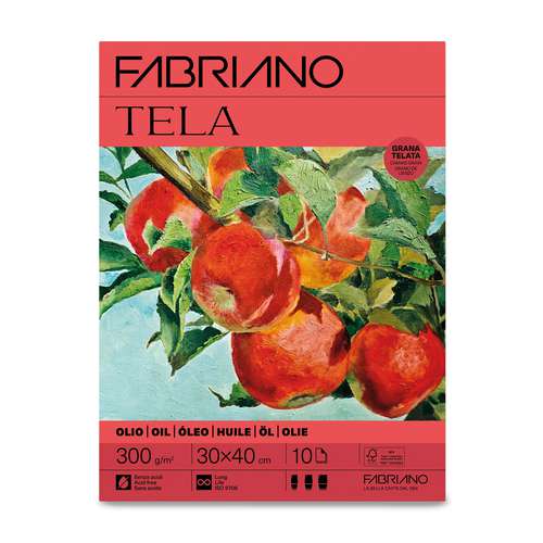 FABRIANO® Tela. Kartonpapier, 300 g/vm, voor het schilderen met olieverf.aan de binnenzijde verlijmd100% zuurvrijverouderingsbestendiggoed absorberebndVerkrijgbaar als vel, blok of op rol.