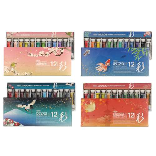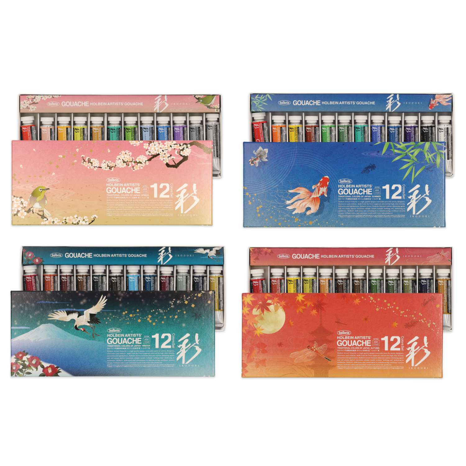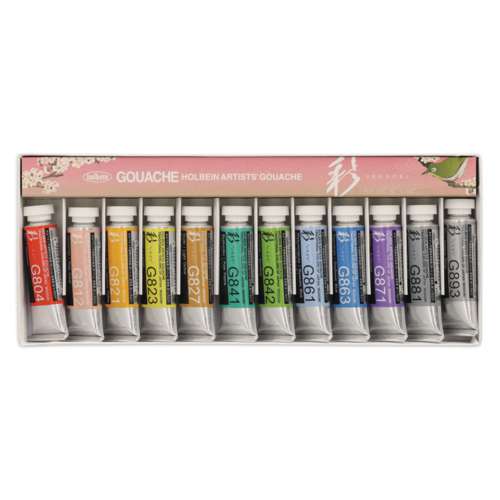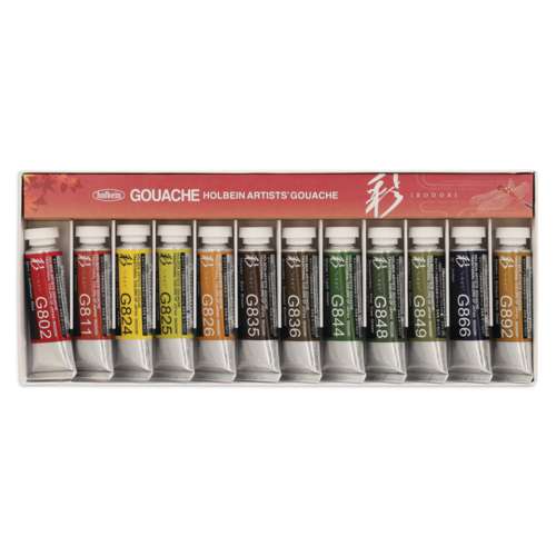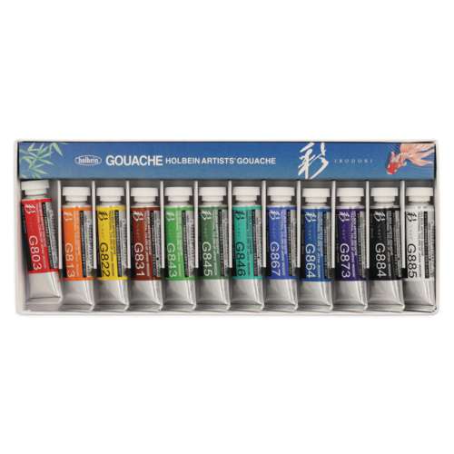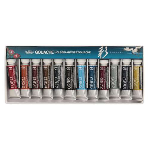 De kleuren van de professionele ARTISTS' GOUACHE van het Japanse HOLBEIN —vernoemd naar Hans Holbein de Jonge (1497 - 1543), de vermaarde kunstenaar uit de Duitse Renaissance — zijn dekkend, helder en verzadigd. Ze drogen gelijkmatig, uniform en fluweelmat op.