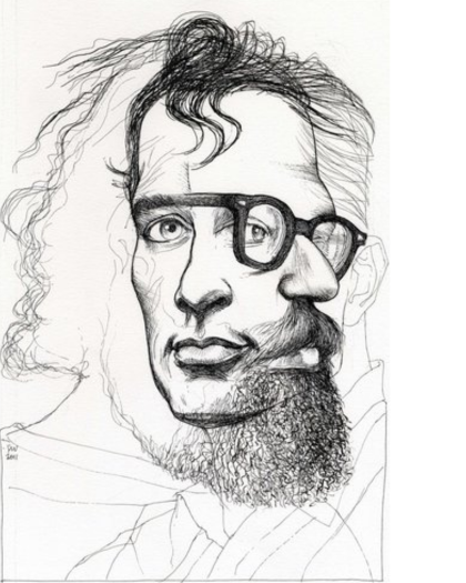 Siegfried — 'Een tekening begint altijd met een idee. Een gelijkend portret tekenen is door iedereen te leren, maar wat zegt dat verder op zich. Het is natuurlijk heel leuk om te doen, maar als ik een portret voor de krant teken van bv. een auteur, dan probeer ik een portret te verzinnen dat qua gelaatsuitdrukking, compositie, kleurgebruik etc. te maken heeft met het laatste boek. Dat bepaalt dan hoe die persoon kijkt, hoe die belicht wordt; dat is allemaal ten functie van.