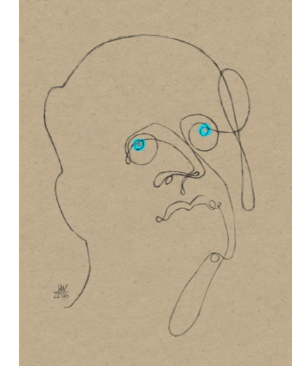 Een tekening van Herman Koch maakte ik helemaal in één lijn; dit had te maken met zijn boek. Voor allebei dus een heel andere benadering, waarbij het erom gaat dat het idee van het boek duidelijk wordt.