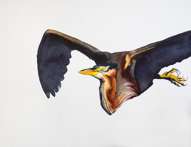 Een afbeelding van een vogel is in het gunstigste geval een mooi plaatje en roept verder niets op. Ik vind het interessant om het juist verder te verkennen. Ik denk dat onze emotie met vogels te maken heeft met het feit dat ze een verbinding zijn tussen hemel en aarde. Ze zijn van oudsher aanzeggers van geluk, of juist ongeluk, of hebben een symbolische betekenis. Hoe kan je dat gevoel nou op het doek brengen?'