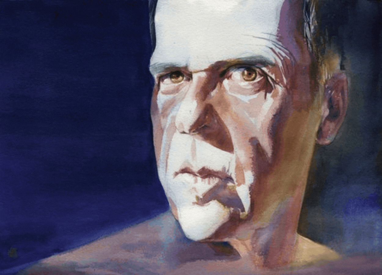 Hier heb ik toen in mijn portret van bijvoorbeeld Mulisch een mooie dikke laag mee opgezet die ik daarna weer deels ben gaan oplossen, wat een mooie gelaagdheid gaf. Dat spul is niet meer beschikbaar, dus ik ben er heel zuinig op.'