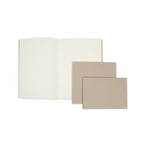 32 Zijden (16 vellen) natuurwit tekenpapier met grove korrel. 120 gr/m², zuurvrij, chloorvrij gebleekt, omslag van grijs boekbinderskarton.