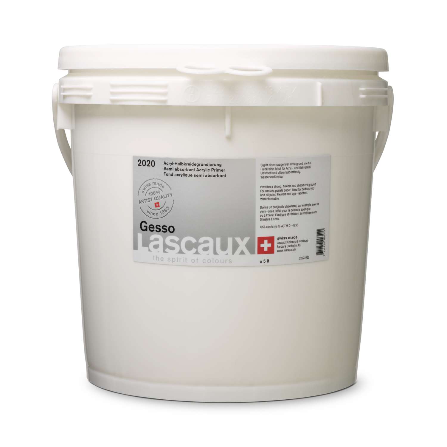 Lascaux Gesso is een lichtechte en verouderingsbestendige acryl half krijtgrond. Deze half-absorberende gesso vormt een uitstekende ondergrond voor olieverf, acryl, aquarel en tempera; de verf strijkt makkelijk uit en hecht goed.