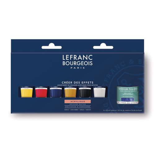 Set LEFRANC & BOURGEOIS Fijne Acrylverf met 6 tubes x 20 ml - inhoud kleuren: