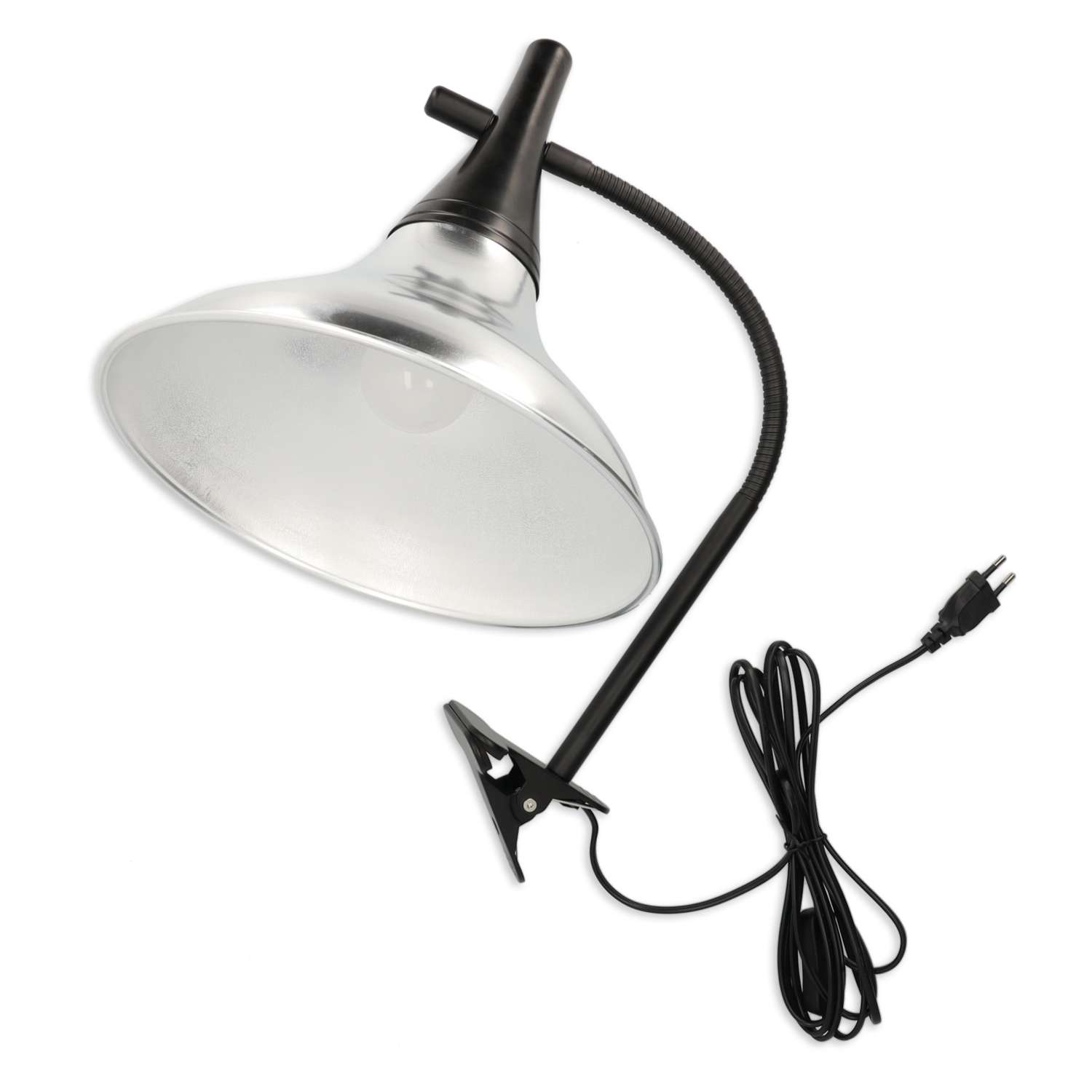 Deze lamp klem je stabiel vast aan je werktafel of ezel. De aluminium kap (Ø ca. 29 cm) dient als een reflector voor het licht. De meegeleverde LED lamp geeft neutraal licht met een kleurtemperatuur van 6.500 K, dat lijkt op koel daglicht buiten.