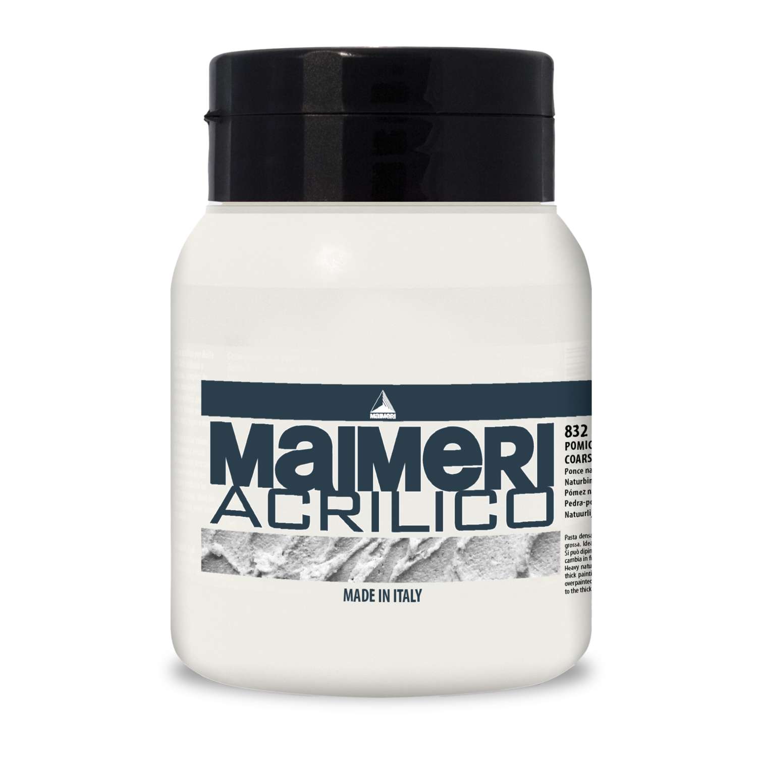 De ACRILICO coarse natural pumice paste 832 van MAIMERI is een dikke modelleerpasta met grofkorrelig puimsteen die je op zichzelf of gemengd met acrylverf kunt gebruiken.
