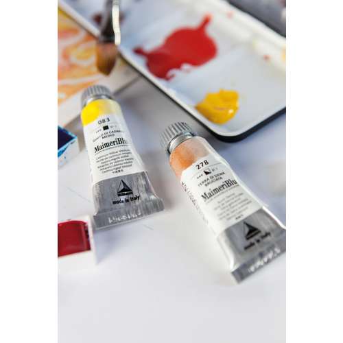 Voor de MaimeriBlu aquarelverf van MAIMERI worden enkel de zuiverste pigmenten gebruikt, gedispergeerd en ambachtelijk aangewreven in een bindmiddel van de beste Arabische gom uit Kardofan en glycerine. Verder niets — géén additieven, géén goedkope vulmiddelen.