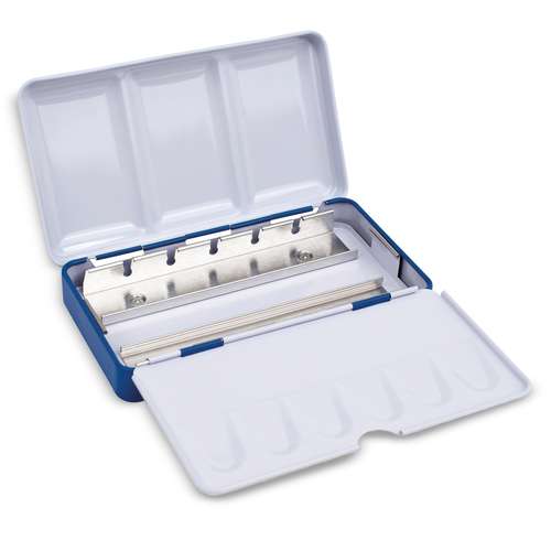 Met deze lege aquarelblikken kun je je persoonlijke kleurenpalet samenstellen met halve napjes aquarelverf van MILAN®. Je kunt kiezen uit 2 formaten, voor respectievelijk 12 of 24 halve napjes. In elk blik is ook nog plaats voor een klein penseel.