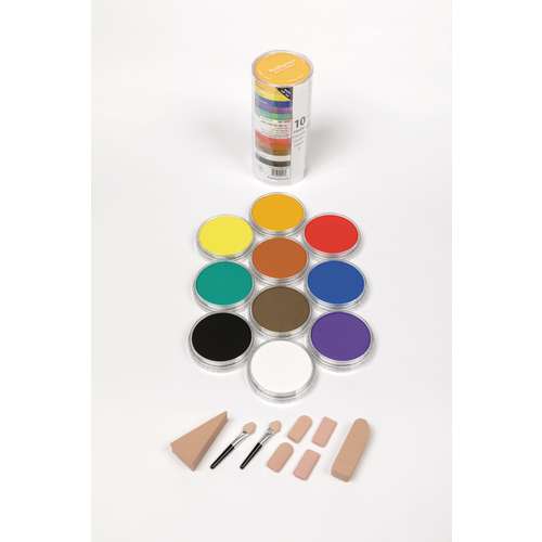 De 10-delige professionele Panpastels sets zijn hoog gepigmenteerd, uitstekend lichtecht en volledig verwijderbaar. Elk potje bevat ca. 35% meer pastel dan een gemiddeld krijt.