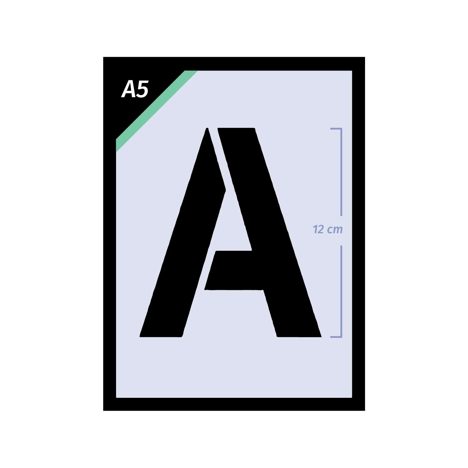 - stencil 8.5 cm x 13 cm — hoogte letter 5 cm