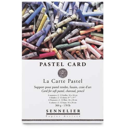 Sennelier Pastel Card is een pH-neutraal karton van 360 gr/m² waarop een subtiele laag (op basis van plantenvezels) is aangebracht. Dit geeft een uitdrukkingsvolle, maar niet al te agressieve structuur aan het werk. De opname kwaliteit van het pigment wordt zodoende beter, er is beduidend minder fixatief nodig. Het zandachtige oppervlak maakt het mogelijk het pastelkrijt in dikke lagen aan te brengen. Dit 360 gram zware karton is geschikt voor alle droge technieken als pastel, houtskool, krijt en potlood.