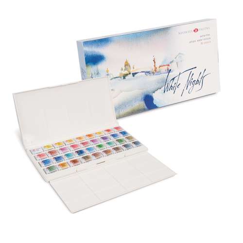 White Nights™ aquarelverf van St. Petersburg is verder leverbaar in losse napjes van 2,5 ml & tubes van 10 ml en in andere sets.
