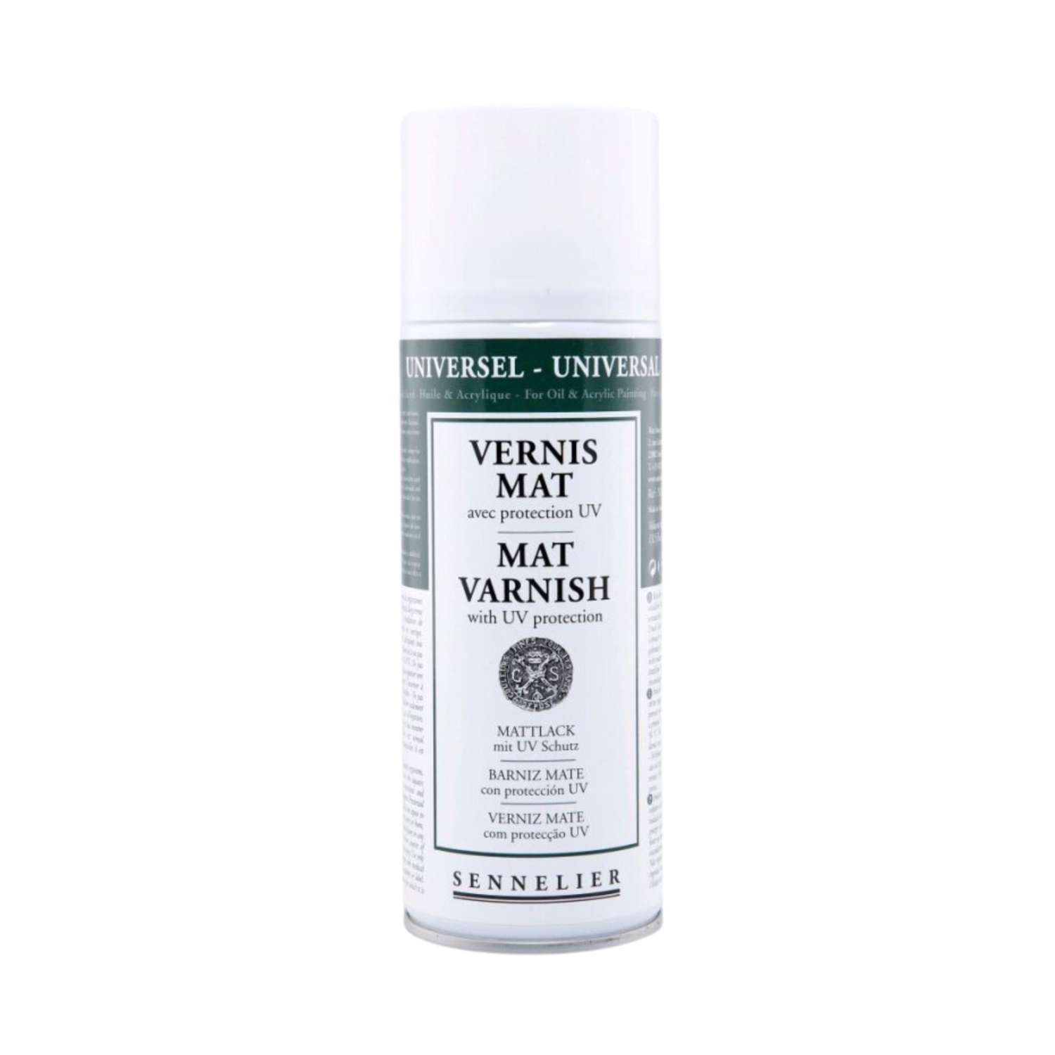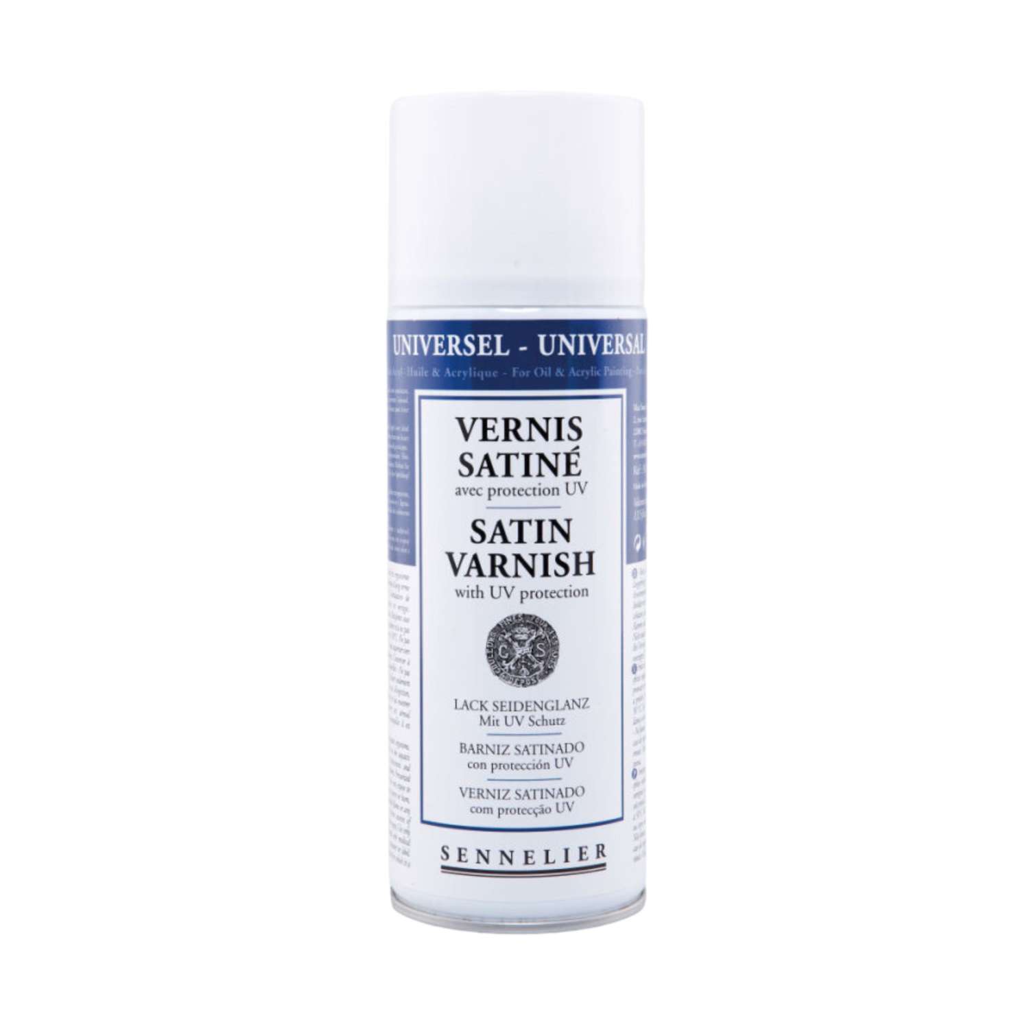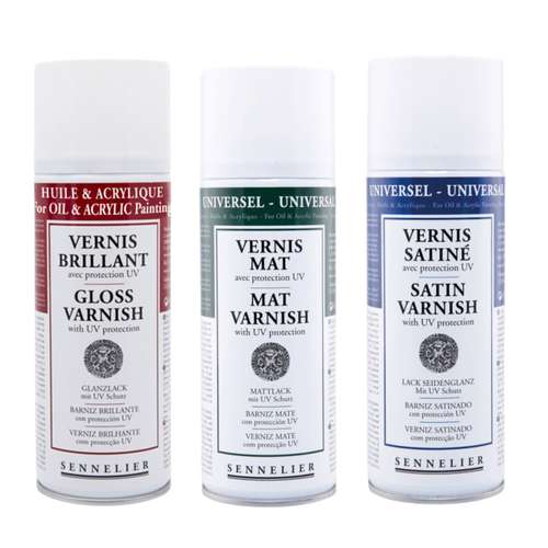 De Sennelier anti-UV vernis is een universele oppervlak bescherming voor schilderijen van olie- en acrylverf. De anti-UV vernis beschermt uw kunstwerken tegen schadelijke UV straling. Leverbaar in 400-ml-spuitbussen in glanzend, mat of satijn.