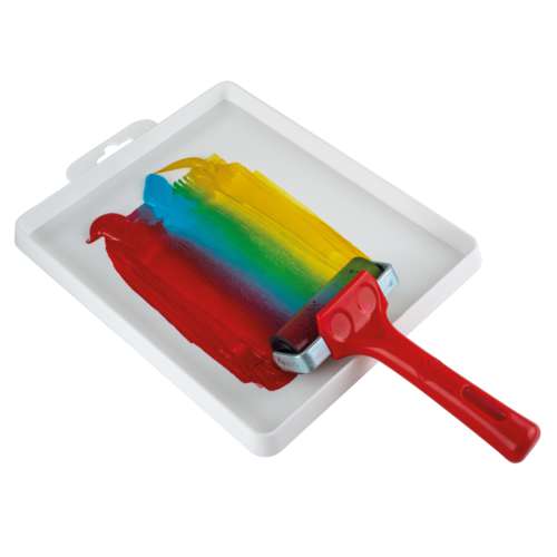 240 mm x 200 mm, 16 mm diep, voor tot en met 200 mm brede verfrollen. Van witte kunststof, ophang gaatje in EURO formaat. Ideaal geschikt voor het mengen van verf of verzamelen van kleine toebehoren.